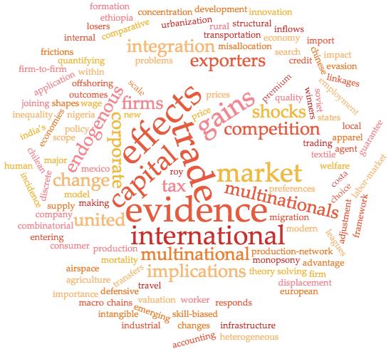 For the 12th year running, I’ve gathered a list of trade-related job-market papers. It’s in reverse-alphabetical order by first name. If I’ve missed someone, please contribute to the list in the comments.